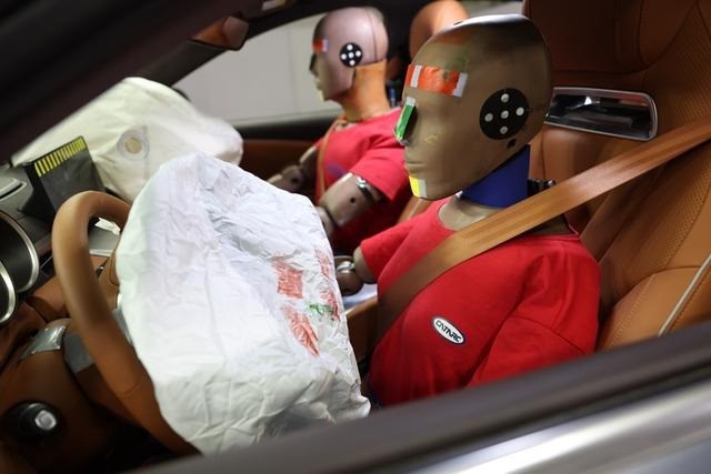 欧拉闪电猫采用了双拉带式主气囊、高强度笼式车身等诸多基础安全设计,共包括5大维度、105个子项目,实现了撑得住、接得住、防得住、稳得住、靠得住。在安全气囊方面,整车配备了包括主副驾正面安全气囊、前排座椅侧面安全气囊、左右侧一体式气帘在内的6个安全气囊,并且在安全气囊响应和特殊设计上做到了更加细节;整车采用的笼式车身设计,针对碰撞溃缩区与高强度座舱区进行了全面优化,使正面、侧面、尾部、顶部的多条传力路径相融合,防护更全面。