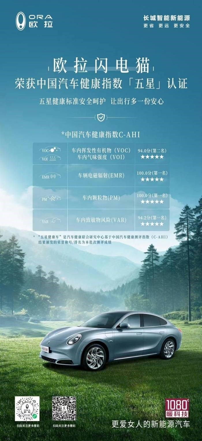 闪电猫的贴心守护,不止于此。面对长途行车,欧拉闪电猫配备的AQS车内空气质量管理系统,可利用传感器监测车外环境,实现车外污染物识别,自动调整空调内外循环,始终保持座舱环境的清新、健康,值得一提的是,闪电猫还在钟南山院士的见证下,荣获了中国汽研2023C-AHI中国汽车健康指数—“五星健康车”的称号;而在用户关心的电池安全上,欧拉闪电猫不仅采用了五重系统安全防护,还通过智能BMS对电压、电流、温度等实时监测,采用多维度算法预判异常,提前预警、干预控制,做到了防患于未然,一路来电一路畅快。
