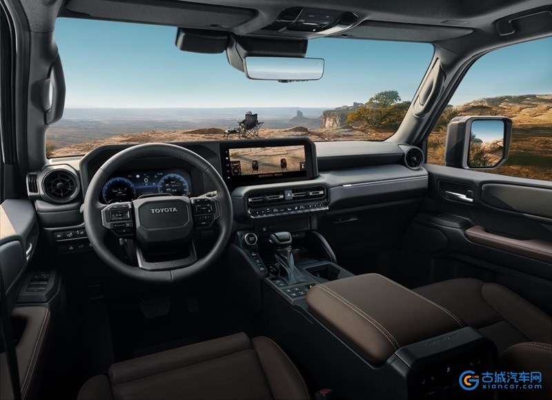论硬派越野的智慧,全新普拉多可谓由表及里都在围绕“更强大、更从容的驾驭”不断进化。全新普拉多的每一处设计,皆从实际越野需求出发。2850mm的轴距精准兼顾了恶劣路面通过性与室内空间,扩大了2排、3排前后间距和行李箱空间。此外,全新普拉多的前悬设计更短,外后视镜宽幅也低于LC150车型,确保了使用便利性与狭窄路段的通过便利性。通过前后悬短、水平车轴、座舱整体后移,纵向直立的车窗设计,打造出独特的车身比例。车辆灯组及格栅的机能部件放置于中央偏高处,保证通过恶劣路况时也不易损坏。紧致的车身配合外凸式的轮胎设计,营造压倒性的稳定感。在内饰设计上,车内仪表台采取水平基调设计,通过追求前方和侧方视野的极致设计,确保安全的越野行驶。
