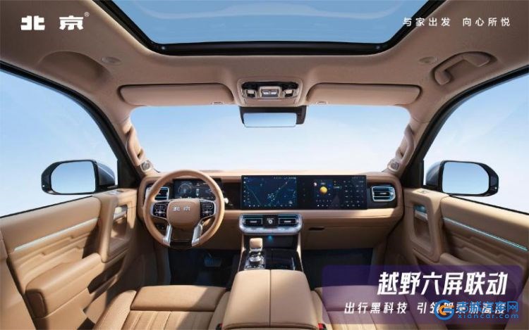BJ60雷霆内部同样延续了简约的设计风格,并运用大量软质材料进行包覆,整体极具质感。同时,新车还配备10.25英寸全液晶仪表、双12.8英寸联屏,并且还保留了中控台区域的大量实体按键,在营造出较强科技感的同时,也具有出色的实用性表现。