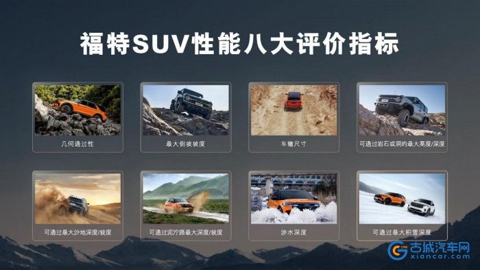 “全球SUV行家”福特深耕SUV领域80余年,拥有业界领先的SUV性能开发体系,根据不同程度户外用车需求打造“专注公路、轻度越野、中度越野、极限越野”四类SUV性能等级,并依据几何通过性、最大侧坡坡度、车辙尺寸等八大性能评价指标对SUV性能进行分类,为用户打造集可靠品质与卓越性能于一身的SUV。