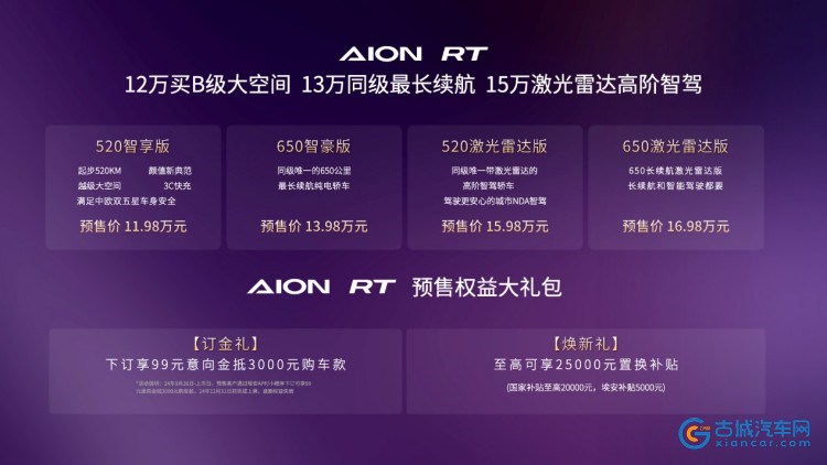 AION RT预售价和购车权益