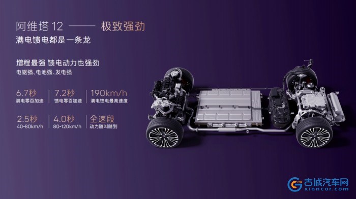 在动力方面,阿维塔12增程版满电状态零百加速6.7秒,馈电状态下加速成绩7.2秒,满电馈电状态最高车速均为190km/h,新车CLTC工况纯电续航超过245km,CLTC工况综合续航超过1155km,WLTC工况馈电油耗5.8L/100km,全SOC区间放电功率较常规电池提升20%以上,常温峰值功率大于300kW,零下10℃低电量状态,整体功率接近主流与燃油2.0T发动机,另外得益于宁德时代骁遥电池耐寒特点,新车即便是在极寒的漠河等北方地区,也能实现像和南方一样的正常用车体验,这一点将是阿维塔在现阶段的增程市场一大竞争力。