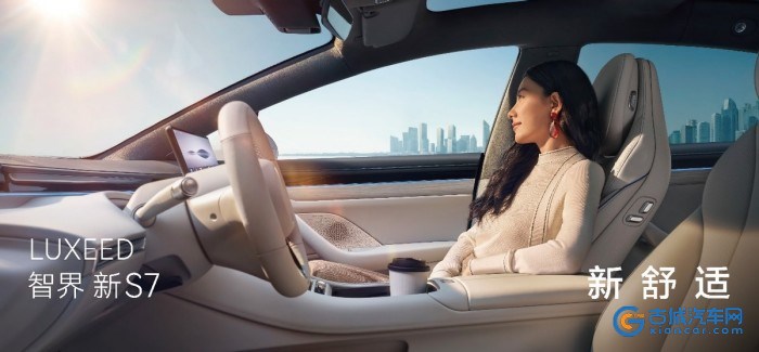 智界新S7采用OneBox造型设计,C+级空间体验可以满足多人舒适出行需求。环抱式游艇座舱内,橄榄型方向盘造型优化,搭配12.3英寸高清远端领航屏,带来沉浸式驾驶氛围。副驾零重力座椅[3]支持通风、加热、按摩功能,可以成为旅途休息或工作日午休的选择。后排车窗和三角窗升级为隐私玻璃,拥有近1米的后排腿部空间,体验媲美大沙发。此外,内饰更新为一体色设计,全车丝云座椅柔软度增加,全车静谧性提升,配合双层镀银隔热天幕,提供科技豪华的乘坐氛围。