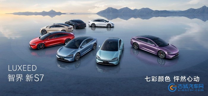 智界新S7带来4款全新车色,印象色系的幻影紫、碧波青和晴光蓝汲取了印象派绘画的灵感和理念,充满艺术气息与时尚品味;大都会红则充满年轻活力,是彰显运动属性的选择。全系共提供7款车身颜色,3款内饰颜色,满足年轻人对时尚与个性的追求。此外,智界新S7带来了全新轮毂样式,全系配备静音轮胎,智界新S7 Ultra可选装运动套件[5],大都会红车漆更有专属黑色车标,把运动与个性的气息拉满。