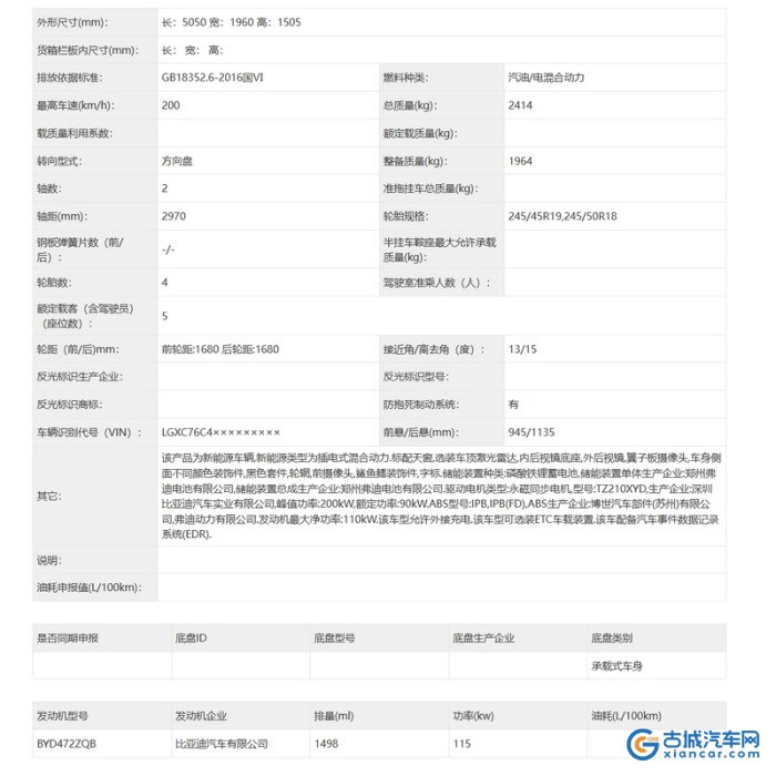 车身尺寸方面,新车长宽高为5050/1960/1505mm,轴距为2970mm。动力方面,插电混动版将搭载第5代DM插混技术,其中1.5T发动机最大功率为115kW,电机最大功率为200kW,纯电续航里程分别为135km、150km和165km;纯电车型则将会升级e平台3.0,单电机版本最大功率500kW,双电机版本前、后电机最大功率分别为230kW和580kW。