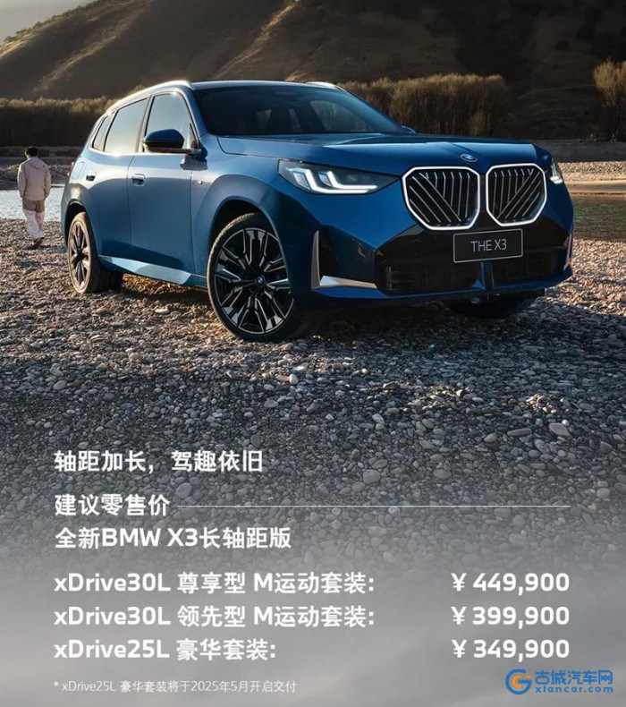 古城汽车网讯 近日,全新宝马X3长轴距版车型正式上市,新车共推出了三款车型,售价区间为34.99万-44.99万元。作为全新换代车型,新车不仅全系标配35项高价值配置,更是专为中国用户需求加长了车身轴距。