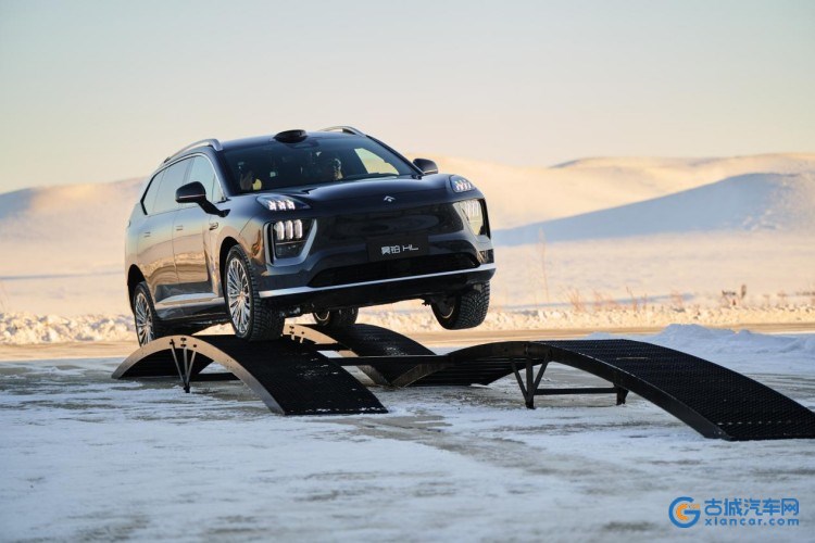 在越野脱困场景下,昊铂HL双电机四驱系统与融合电子差速锁协同作战,将动力合理分配到四个车轮,让有附着力的车轮获得足够动力,轻松通过交叉轴以及冰面爬坡等极限测试,展现出极强的硬核实力。
