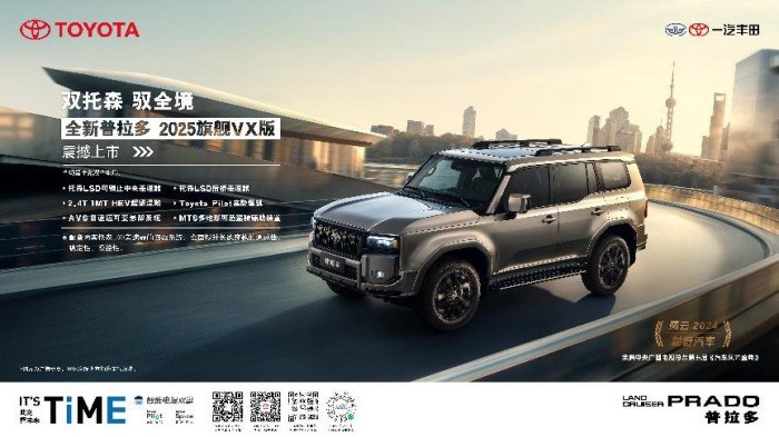全新普拉多旗舰VX版的到来,再次彰显了全新普拉多在硬派越野领域的深厚积淀,和对用户需求的深刻理解。凭借五大硬核实力和四个级别的多元化选择,我们相信,“合抱之木,生于毫末;九层之台,起于累土”,让我们和全新普拉多一起,都以最认真的态度,走好每一步,做好每件事,共同解锁心之所向的美丽新世界。