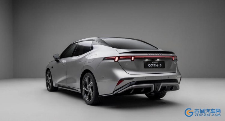 领克07 EM-P的尾部运用了更丰富的线条,其中尾部上方的小鸭尾、底部包围处均使用了与车顶呼应的黑色,加之横向为主的线条凸显出层次感。造型修长的贯穿式LED尾灯内部伴有竖向灯组,点亮之后的视觉效果相当出众。与此同时,新车后包围采用大尺寸扩散器设计,运动感十足。