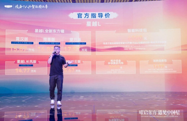 此次发布的星瑞全新东方曜共推出6款配置车型,限时上市指导价区间为9.87万元至13.87万元。星越L全新东方曜则提供3款车型,限时指导价范围为15.87万元至17.97万元。