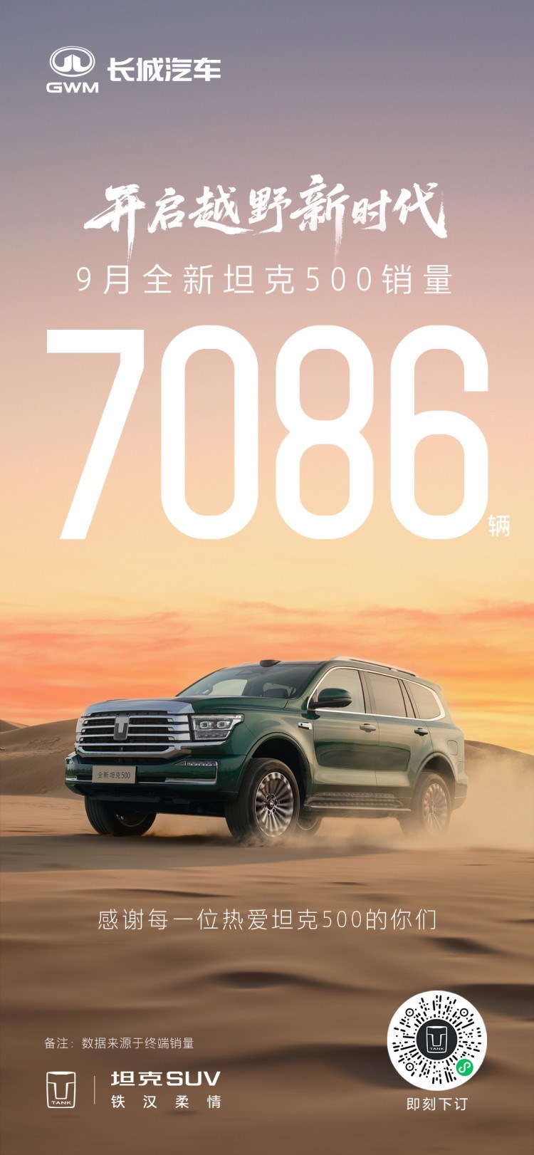 古城汽车网讯 2025年9月,坦克品牌再度交出亮眼成绩单:旗下重磅车型全新坦克500单月销量达7086辆,成为30万级以上新能源越野SUV市场中势头强劲的“销量标杆”。