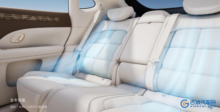 座椅方面,新车采用5座布局,副驾座椅升级为121°调节,拥有“贵妃椅模式”,一键进入零重力姿态;后排座椅支持通风、加热、按摩功能,支持19°-37°十档调节,能满足不同乘客的舒适需求。