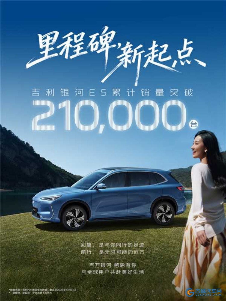 古城汽车网讯 近日,“全球智享纯电SUV”吉利银河E5公布10月全球销量数据,达到15753辆,累计销量突破210000辆。自2024年8月份上市至今,吉利银河E5仅用15个月便达成这一成就,充分印证了其“15万内最强纯电SUV”的市场号召力。值得一提的是,在包括吉利银河E5在内的诸多爆款车型共同推动下,吉利银河品牌已于今年10月提前实现年销百万目标,2025年度累计销量达1002461辆,成为最快突破年销百万大关的新能源品牌。