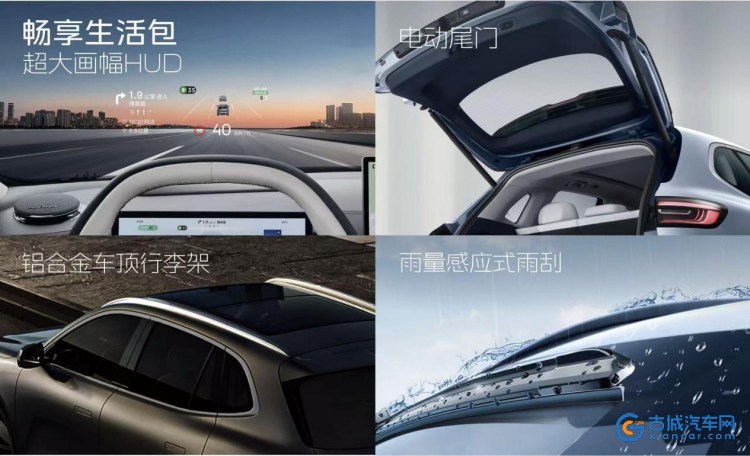 “畅享生活包”聚焦用车便利性与美好生活品质提升,集四项实用功能于一体:超大画幅HUD抬头显示让关键驾驶信息一目了然,有效提升行车安全;智能电动尾门支持一键自动开合,让日常装载更加轻松便捷;铝合金车顶行李架不仅质感出众,更为家庭出游拓展额外储物空间;雨量感应式雨刷则可智能感知雨量,自动调节工作频率。一系列精心设计的配置从安全、便利、拓展性等多个维度,全方位提升了用户的用车品质。