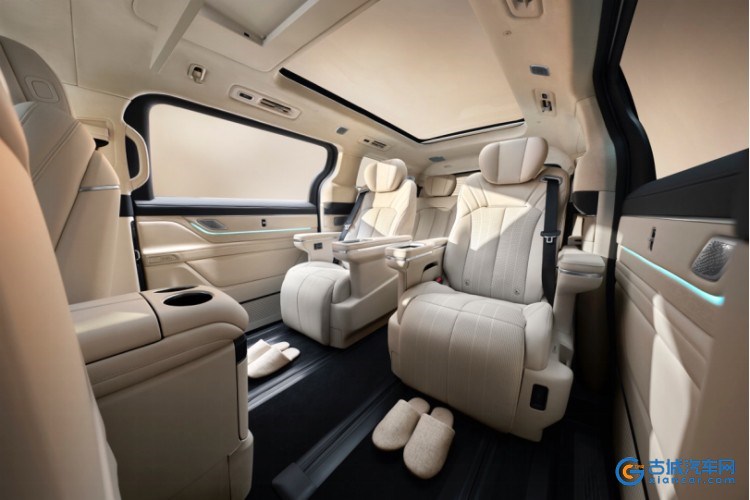 内部座舱呈现出了旗舰级的奢适格局,舱内色彩温暖柔和,营造出自然舒适的氛围。超大面积全景天幕延伸至第三排上方,使得整车视野更加开阔通透。二排座椅宽大舒适,尽显尊贵感;三排同样空间充裕,打破了传统MPV三排局促的刻板印象,也意味着用户将享受到与以往截然不同的豪华出行体验。二排小桌板进一步拓展了使用场景,移动办公、会客等皆可轻松实现。细节处的储物空间设计,也体现出银河V900无微不至的贴心考量。
