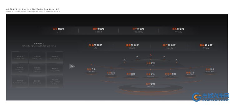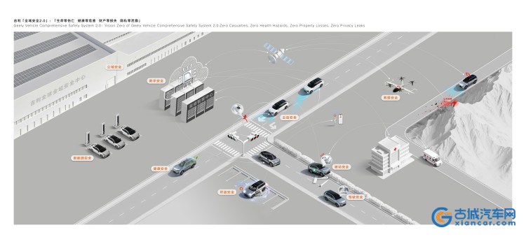 作为行业安全技术的先行者与引领者,吉利在“全域AI”技术体系的赋能下,以“AI为纲 责任为本”,基于原有的“全域安全”技术体系进阶打造“全域安全2.0”技术体系。结合智能时代的安全新需求和新挑战,“全域安全2.0”技术体系秉持“以人为尊”理念,通过技术升级、能力突破与范式创新,将侧重“整车安全”的视角升级为“人-车-路-云-星”的生态视角,旨在贯穿用户出行全场景、覆盖出行全领域、联动出行全生态;并以“生命零伤亡、健康零危害、财产零损失、隐私零泄露”四大安全愿景为指引,逐步构建的一套为消费者提供全面的安全保障技术体系。