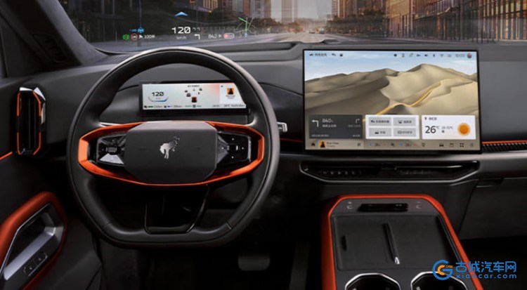 内饰方面,福特智趣烈马采用了当下新能源车型流行的简约式设计风格。在智能化上,新车配备8.8英寸仪表、15.6英寸2.5K Mini-LED中控屏、以及70英寸AR-HUD抬头显示,车机内置高通骁龙8255芯片,配备越野360全景系统以及智能旅行路书等功能。其他配置还囊括手机无线充电、语音AI大模型、21扬声器音响系统、7.5L冷暖车载冰箱等配置。