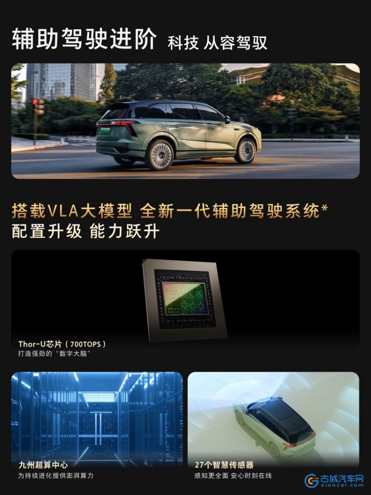 同时,新车配备700 TOPS算力的Thor-U芯片,持续提供高稳定而充沛的算力,在27颗传感器的加持下,过合理的布局,高效的协同,能够在雨雾等复杂环境下,快速识别潜在风险。新车还加入辅助驾驶提示灯,向外部展示辅助驾驶状态。