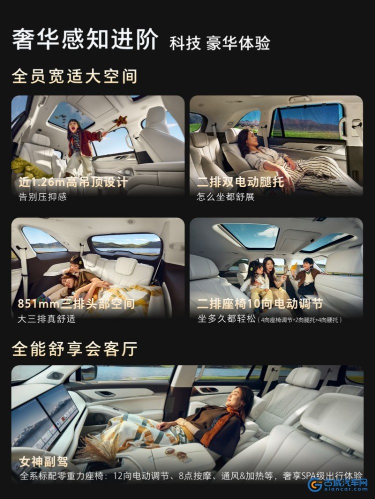 空间布局方面,全新蓝山智能进阶版从主驾的八点按摩、副驾的一键零重力模式,到二排带腿托的“头等舱”座椅与一键拓展的奢侈空间,再到确保成人可坐可躺的实用第三排,每个座位都承载着对家人的尊重与关怀。配合-6℃-50℃的7L豪华⼤冰箱,将实用关怀融入每一处设计。
