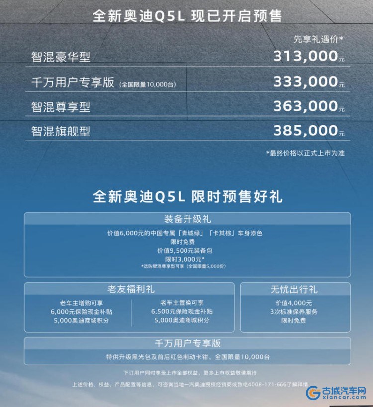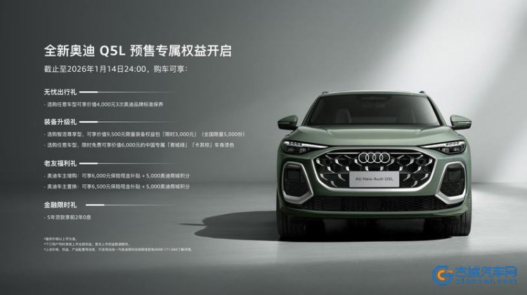 古城汽车网讯 日前,根据互联网消息,全新奥迪Q5L将于1月15日上市,新车在此前已经开启预售,预售价31.3-38.5万元。全新奥迪Q5L基于全新的PPC燃油车平台打造,搭载2.0T发动机,配备华为乾崑辅助驾驶系统。