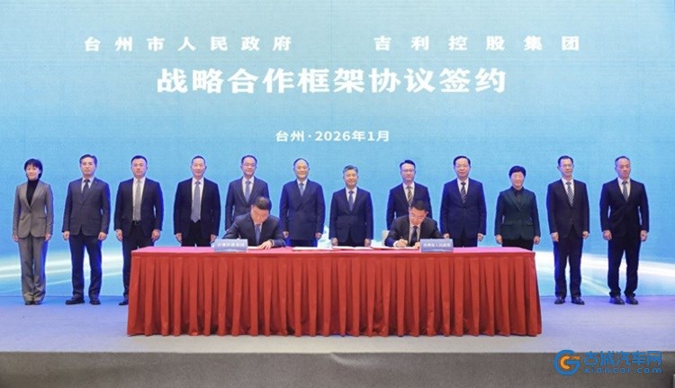 古城汽车网讯 1月8日,台州市人民政府与吉利控股集团正式签署战略合作框架协议,双方将聚焦新能源汽车领域深化协同,合力推动台州建设新能源高端品牌汽车制造基地,为地方产业升级与高质量发展注入新动能。台州市委书记沈铭权、吉利控股集团董事长李书福出席签约活动并致辞,市领导王健、吴海平及吉利控股相关负责人等参与活动。