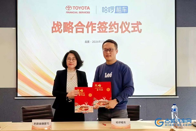 古城汽车网讯 2026年2月3日,丰田金融服务(中国)有限公司(丰田金服)与国内知名移动出行平台哈啰租车正式签署战略合作备忘录。丰田金服副总经理陈宇洁、哈啰集团副总裁兼哈啰租车总经理张重骐等出席了签约仪式。