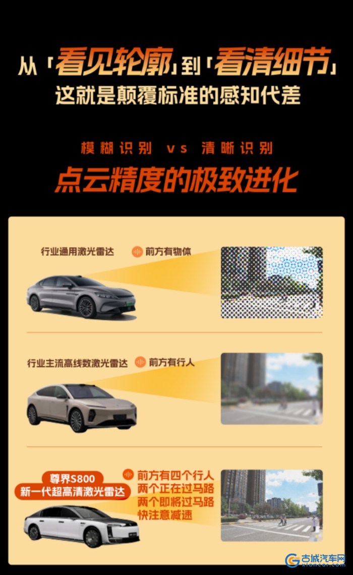 古城汽车网讯 近日,有知情人士透露,激光雷达技术即将迎来一次重要升级,而即将发布的尊界S800或将成为首款搭载该全新激光雷达的车型。据悉,新一代激光雷达在感知精度和环境理解能力上实现了显著提升,点云密度大幅跃升,意味着车辆对周围环境的感知将从“粗略识别”迈向“高精度建模”。