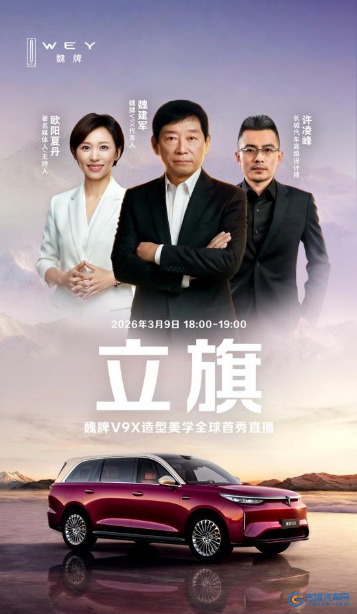 古城汽车网讯 3月9日,魏牌即将上市的“AI豪华六座旗舰”魏牌V9X,于保定开展了一场主题名为“立旗”的造型美学全球首秀直播。