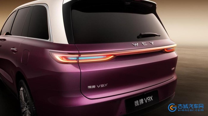 魏牌V9X前脸以中轴对称“立其气”、重檐结构“守其神”,将东方建筑的精气神儿定格于车头,并有如高定珠宝般精致深邃的悬浮车标画龙点睛;融合定瓷“举重若轻”匠人智慧的侧身曲面,金镶玉把手、飞檐烽火台尾灯及小蓝灯等设计优雅灵动且注重安全实用;“天地交泰”紫金双色,将东方美好寓意与顶级喷涂工艺结合,打造经得起岁月考验的视觉表达;内饰凝练“悠”“雅”内核,以环抱式布局营造家庭温馨氛围,以媲美MPV的六座空间实现“豪华不偏袒”,以奢材巧工、全维奢享配置打造舒适体验,整体呈现有温度的“东方家宅”。同时,魏牌V9X从用户需求出发,通过行业首创门侧无线充电板、多元储物空间、暖心老幼配置等细节,让豪华落地日常出行的方寸之间。