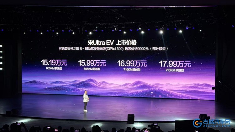 古城汽车网讯 3月26日,比亚迪宋Ultra EV 正式上市,共4款车型,包括605KM领先型、605KM超越型、710KM超越型和710KM卓越型,官方指导价15.19万-17.99万元。新车全系搭载比亚迪第二代刀片电池及闪充技术,同时拥有710公里CLTC纯电续航、天神之眼B、云辇-C、TBC高速爆胎稳行系统等豪华配置,为消费者带来全新的纯电出行方式,全面开启闪充时代。