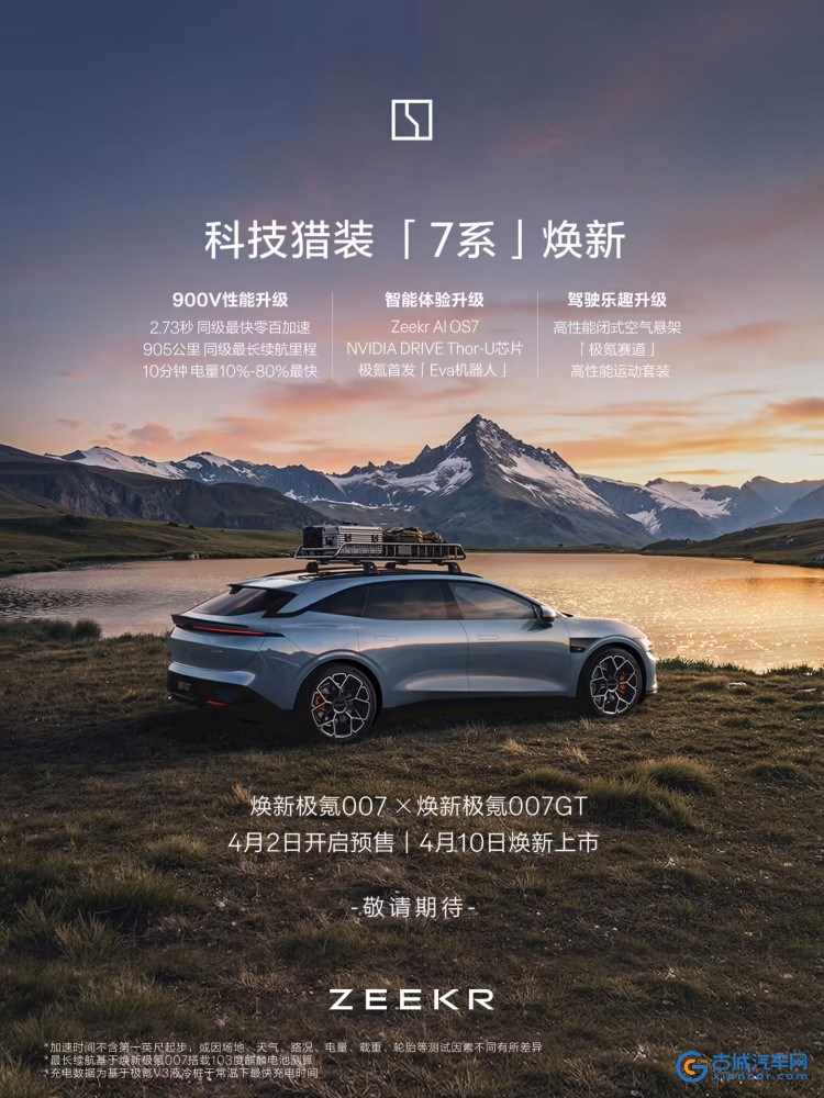 古城汽车网讯 3月31日,极氪宣布两大新品动作:由极氪007GT与极氪007组成的焕新7系即将开启预售,同时极氪001五周年纪念版也将限量发售。